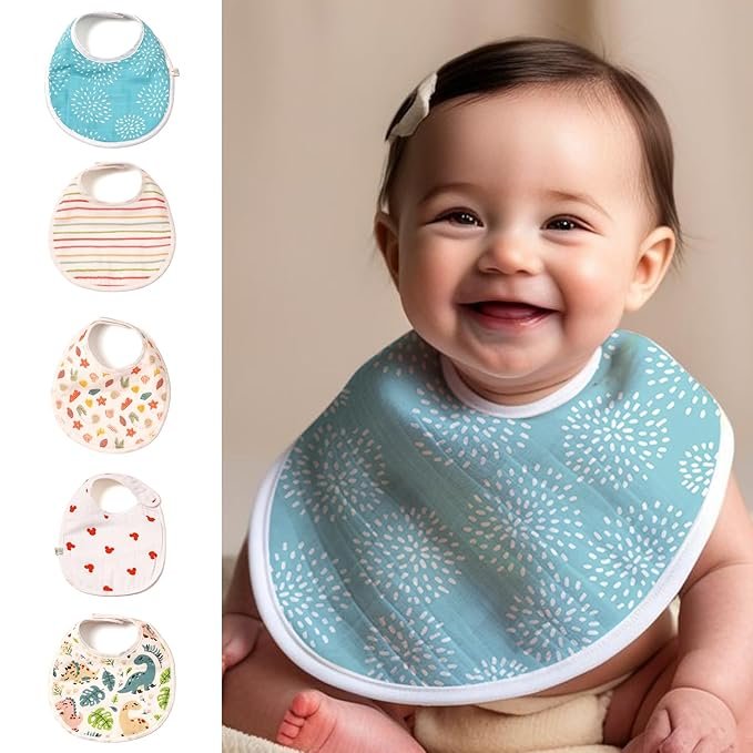 BebyBear Muslin Pure Cotton 3 Layer Baby Bibs, Ultra Soft Skin Friendly Pure Cotton Baby Bibs ( Pack Of 5 )